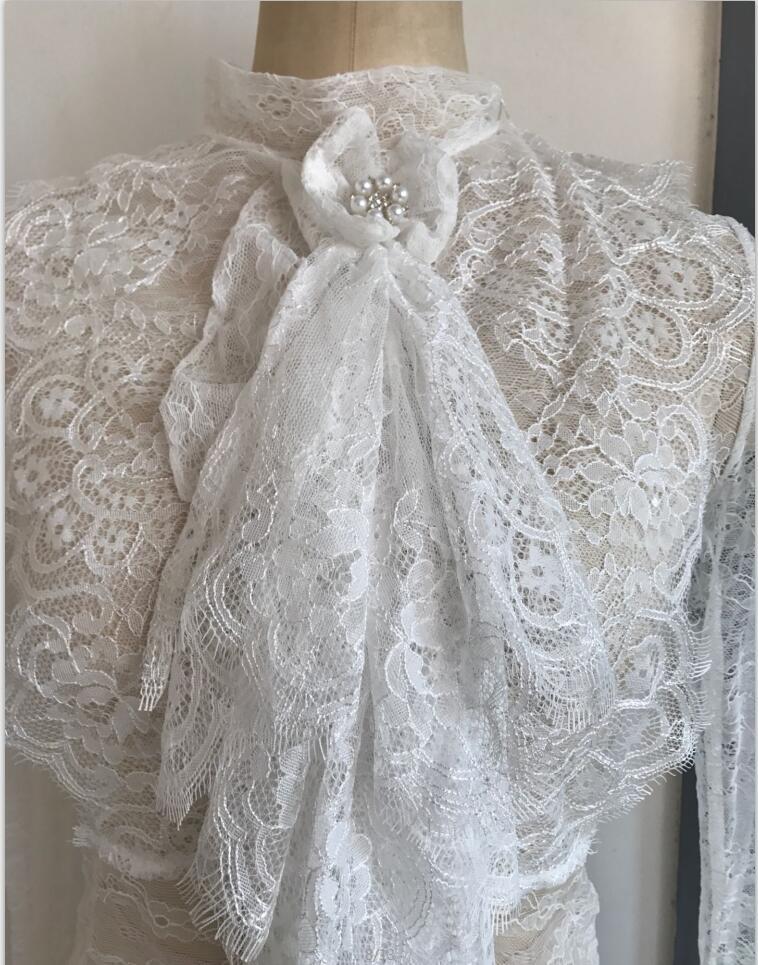 Make a romantic style statement in this gorgeous lace top! It's long sleeves and bow collar add a flirty yet elegant charm, while the lace overlay at the chest provide that drama. Complete your collection of sexy tops for women with this beautiful top.